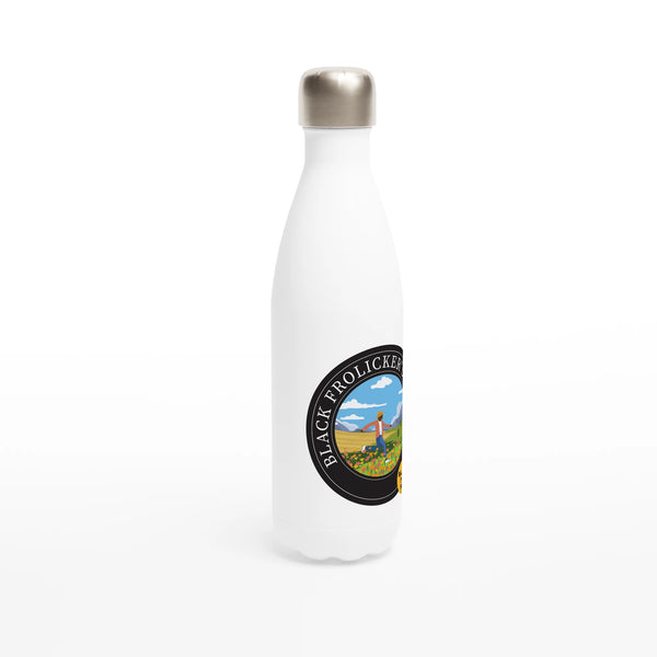 Don’t leave home without this sleek 17oz Black Frolickers Society imprinted water bottle to keep you hydrated. It’s made from high-quality stainless steel and has double-wall insulation to keep cold drinks cold and hot drinks hot. It’s elongated neck and thin design allows you to easily carry it or slip it into your bag. Best of all, the leak-proof cap ensures no liquids will spill.